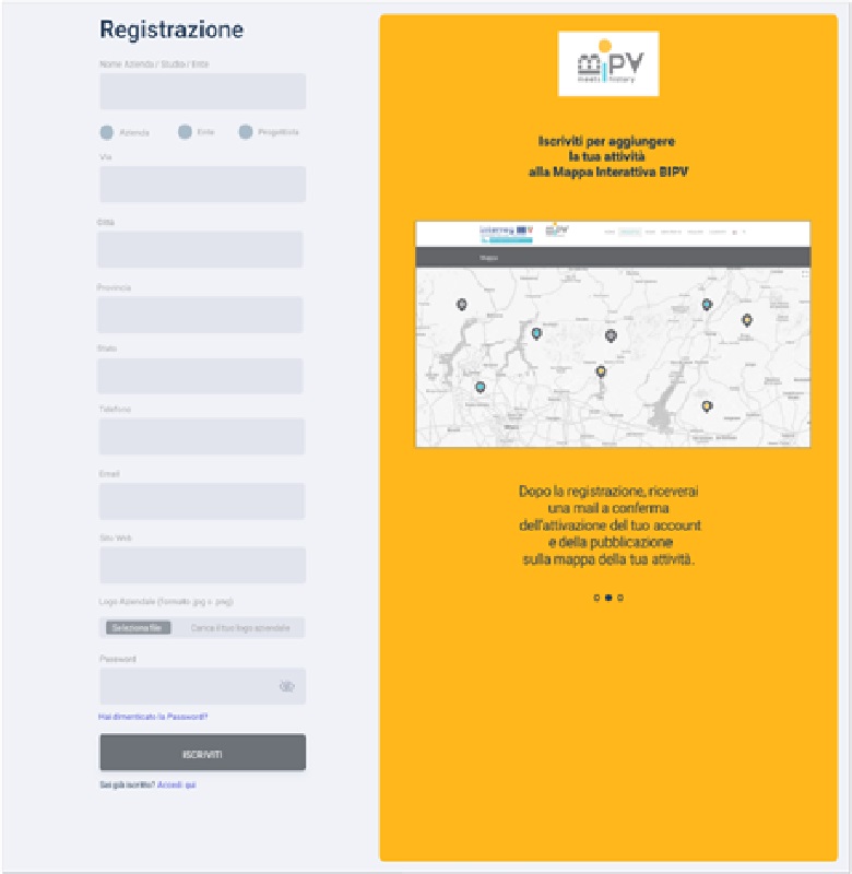 Il sistema di gestione è interattivo, cioè aperto e implementabile dal basso in linea con il bottom-up approach previsto dal programma di cooperazione interregionale Italia-Svizzera che finanzia il progetto. Chiunque sia interessato, infatti, può registrarsi compilando un modulo specifico e comparire sulla mappa per far parte della catena del valore fotovoltaico integrato che BIPV meets history mira a rafforzare.